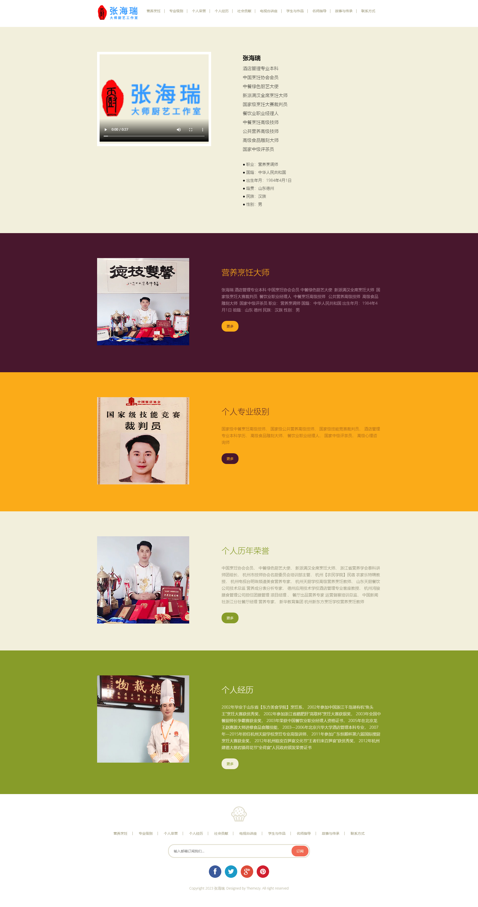 張海瑞 師承 烹飪大師 王勇先生【杭州西湖工匠大師】,多年來培養烹飪人才近五千人,多次榮獲全國烹飪大賽金勺獎 金獎等榮譽 ,研究創作特色文化宴席多套 受到當地政府表彰,勵志從事烹飪教育工作,將所學專業技能傳承發揚,志立于開發研究新派特色營養菜品及宴席。