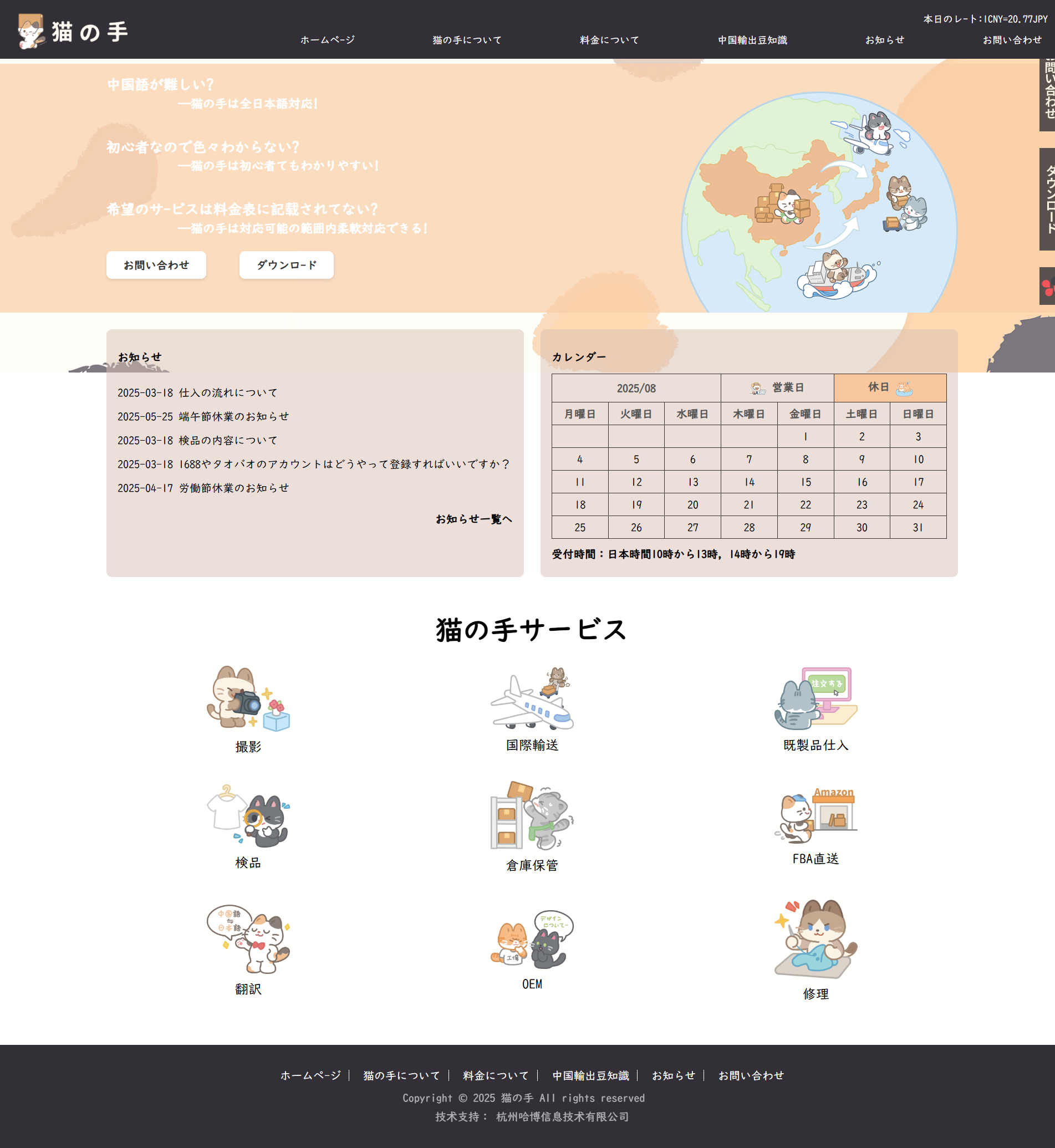 私たち「貓の手」は、中日間の電子商取引(eコマース)に特化した輸出代行會(huì)社です。